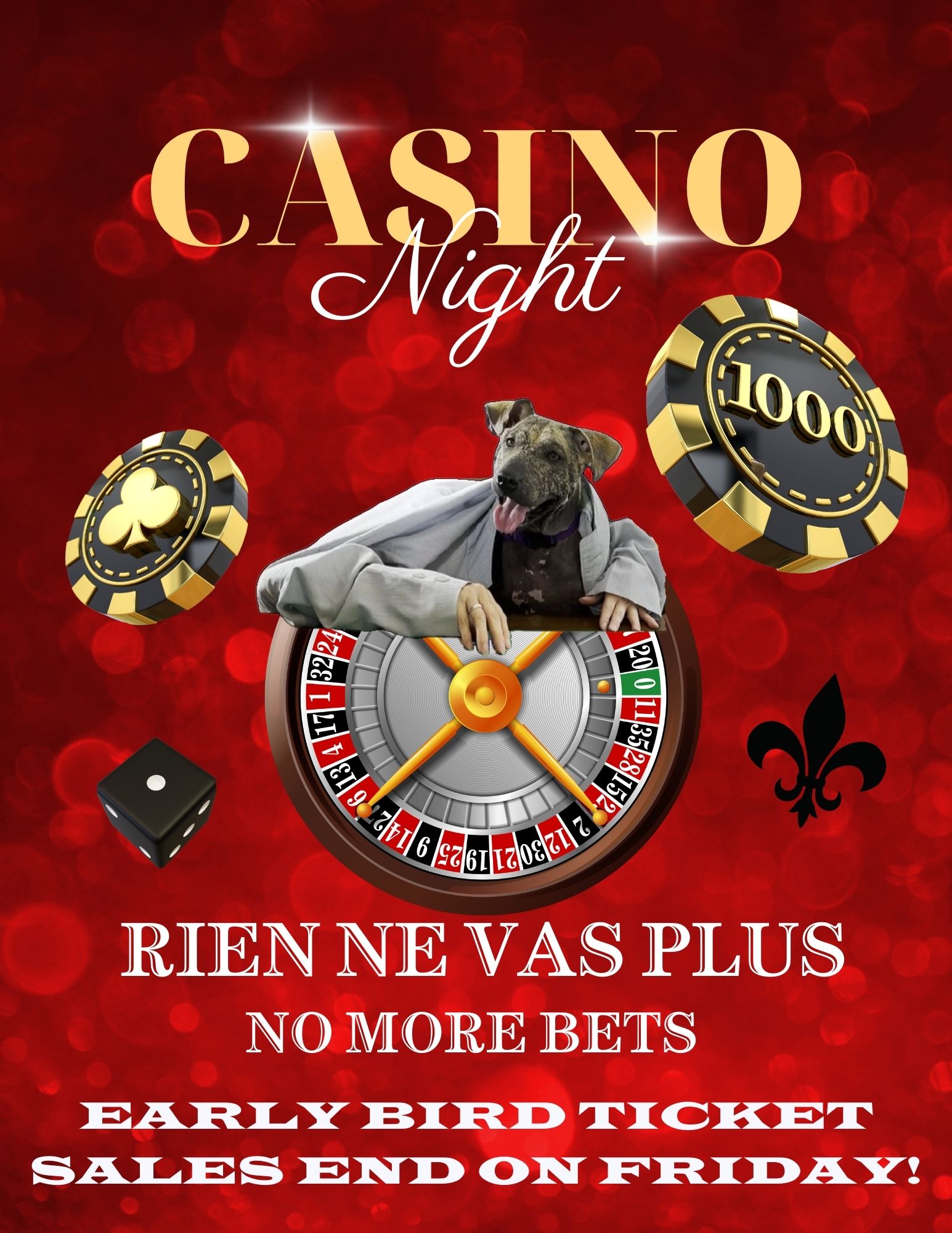 | | |  | Casino Night Is Almost Here! Are you ready for Lucky Dog's 11th Annual Let's Get Lucky Casino Night? Mark your calendars for Saturday, October 19th, 2024, and join us for an unforgettable evening filled with casino games, delicious food, signature drinks, live music, and fantastic company! Trust us—this is the one event you won’t want to miss! Want to make Casino Night a HUGE success? We're seeking exciting silent auction items! If you have something to contribute or can help us gather auction donations, please reach out to Melissa. The more help we have, the bigger and better our auction will be! |